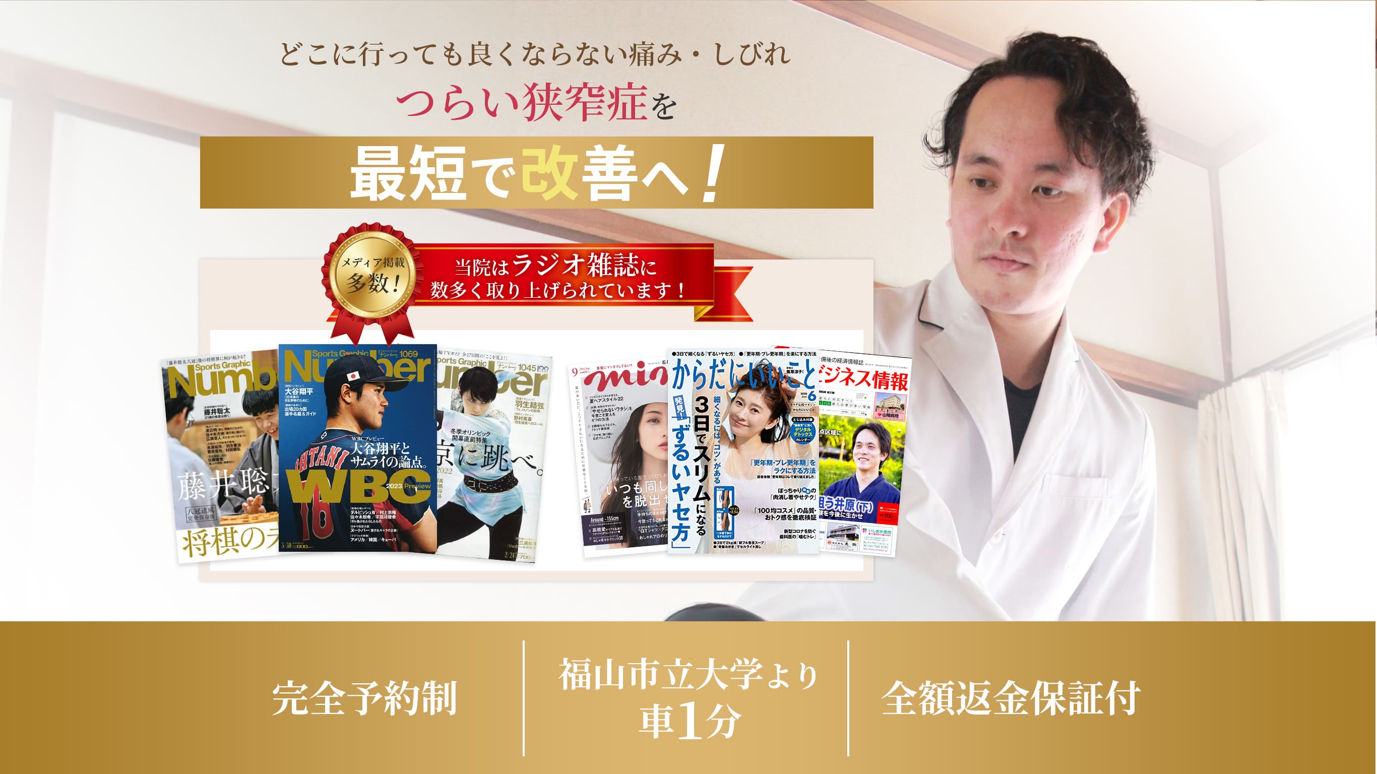私はあなたが『この痛みは改善するんだ!』と心から思っていただけるように、どの整体院の先生よりもあなたの「狭窄症」を理解し、全力で施術させていただきます!!